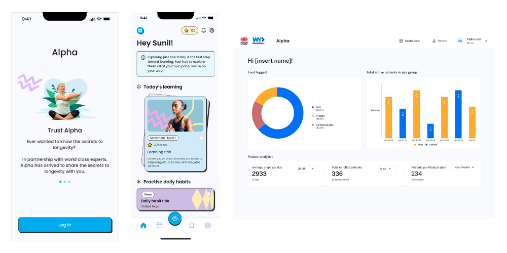 Alpha was a healthcare initiative based in Sydney, Australia, designed to support personal health and wellness through structured, personalized care plans. The platform aimed to engage users in habit-building and health tracking via a mobile experience, while enabling healthcare professionals to manage, monitor, and optimize those plans through a dedicated web application.